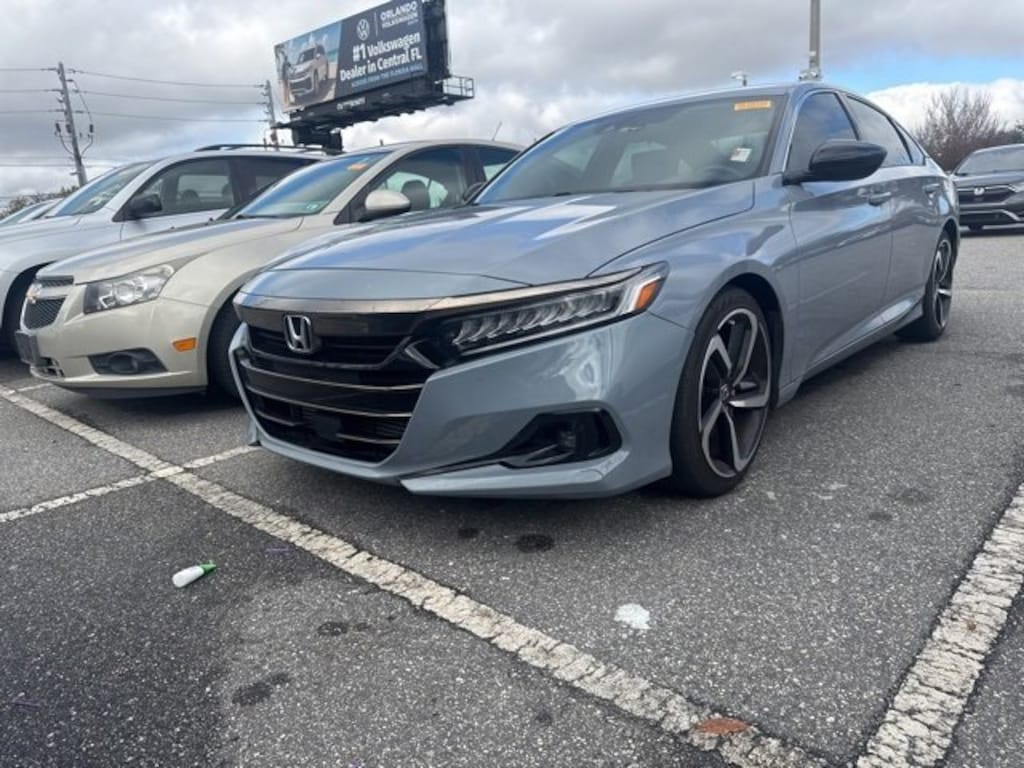 Honda Certified! 7 year 100,000 Mile Factory Warranty! ONE OWNER, CLEAN CARFAX, APPLE CARPLAY, ANDROID AUTO, BLUETOOTH, HANDSFREE, BACKUP CAMERA, POWER WINDOWS, POWER LOCKS, ALLOY WHEELS, LOCAL TRADE, BOUGHT AND SERVICED AT COGGIN HONDA OF ORLANDO, EXCELLENT SERVICE HISTORY, COME SEE THIS TODAY!, PRICE INCLUDES ALL RECONDITIONING FEES, Accord Sport, 4D Sedan, 1.5T I4 DOHC 16V Turbocharged VTEC, CVT, FWD, Black Cloth, 4-Wheel Disc Brakes, 8 Speakers, ABS brakes, Adaptive Cruise Control: Adaptive Cruise Control (ACC) with Low-Speed Follow, Air Conditioning, Alloy wheels, AM/FM radio, Apple CarPlay/Android Auto, Auto High-beam Headlights, Automatic temperature control, Brake assist, Bumpers: body-color, Cloth Seat Trim, Delay-off headlights, Driver door bin, Driver vanity mirror, Dual front impact airbags, Dual front side impact airbags, Electronic Stability Control, Emergency communication system: HondaLink, Exterior Parking Camera Rear, Forward collision: Collision Mitigation Braking System (CMBS) + FCW mitigation, Four wheel independent suspension, Front anti-roll bar, Front Bucket Seats, Front Center Armrest, Front dual zone A/C, Front fog lights, Front reading lights, Fully automatic headlights, Illuminated entry, Knee airbag, Lane Departure Warning System, Leather Shift Knob, Leather steering wheel, Low tire pressure warning, Occupant sensing airbag, Outside temperature display, Overhead airbag, Overhead console, Panic alarm, Passenger door bin, Passenger vanity mirror, Power door mirrors, Power driver seat, Power steering, Power windows, Radio data system, Radio: 180-Watt AM/FM Audio System, Rear anti-roll bar, Rear seat center armrest, Rear window defroster, Remote keyless entry, Security system, Speed control, Speed-sensing steering, Split folding rear seat, Spoiler, Steering wheel mounted audio controls, Tachometer, Telescoping steering wheel, Tilt steering wheel, Traction control, Trip computer, Wheels: 19 Machine-Finished Alloy w/Black Inserts. 29/35 City/Highway MPG KBB Fair Market Range High: $23,470 Certified. 2021 Honda Accord Sport Sonic Gray Pearl 2021 Honda Accord Sport 4D Sedan FWD CVT 1.5T I4 DOHC 16V Turbocharged VTECRecent Arrival!