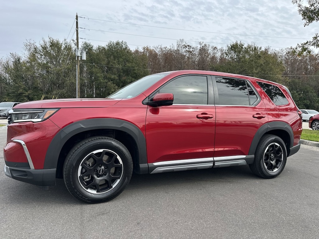 Priced below KBB Fair Purchase Price! HONDA CERTIFIED, ONE OWNER, CLEAN CARFAX, APPLE CARPLAY, ANDROID AUTO, BLUETOOTH, HANDSFREE, POWER WINDOWS, POWER LOCKS, SUPER LOW MILES, BOUGHT AND SERVICED AT COGGIN HONDA OF ORLANDO, EXCELLENT SERVICE HISTORY, COME SEE THIS TODAY!, PRICE INCLUDES ALL RECONDITIONING FEES, Pilot EX-L+, 4D Sport Utility, 3.5L V6 DOHC 24V, 10-Speed Automatic, AWD, Radiant Red Metallic II, Black Leather, 4-Wheel Disc Brakes, 9 Speakers, ABS brakes, Adaptive Cruise Control: Adaptive Cruise Control (ACC) with Low-Speed Follow, Air Conditioning, AM/FM radio: SiriusXM, Auto High-beam Headlights, Automatic temperature control, Blind Spot Information (BSI) System warning, Brake assist, Bumpers: body-color, Delay-off headlights, Dual front impact airbags, Dual front side impact airbags, Electronic Stability Control, Emergency communication system: HondaLink Assist, Exterior Parking Camera Rear, Four wheel independent suspension, Front anti-roll bar, Front dual zone A/C, Front fog lights, Fully automatic headlights, Knee airbag, Lane departure: Lane Keeping Assist System (LKAS) active, Low tire pressure warning, Memory seat, Occupant sensing airbag, Overhead airbag, Panic alarm, Power driver seat, Power Liftgate, Power steering, Power windows, Radio data system, Radio: 245-Watt Audio System, Rear air conditioning, Rear anti-roll bar, Rear window defroster, Remote keyless entry, Security system, SiriusXM, Speed control, Speed-sensing steering, Steering wheel mounted audio controls, Traction control. KBB Fair Market Range High: $41,610 Clean CARFAX. Certified. 2025 Honda Pilot EX-L+ Radiant Red Metallic II 2025 Honda Pilot EX-L+ 4D Sport Utility AWD 10-Speed Automatic 3.5L V6 DOHC 24VOdometer is 4171 miles below market average!