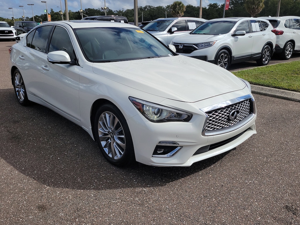 Majestic White 2021 INFINITI Q50 4D Sedan 3.0t LUXE RWD 7-Speed Automatic with Overdrive 3.0L V6