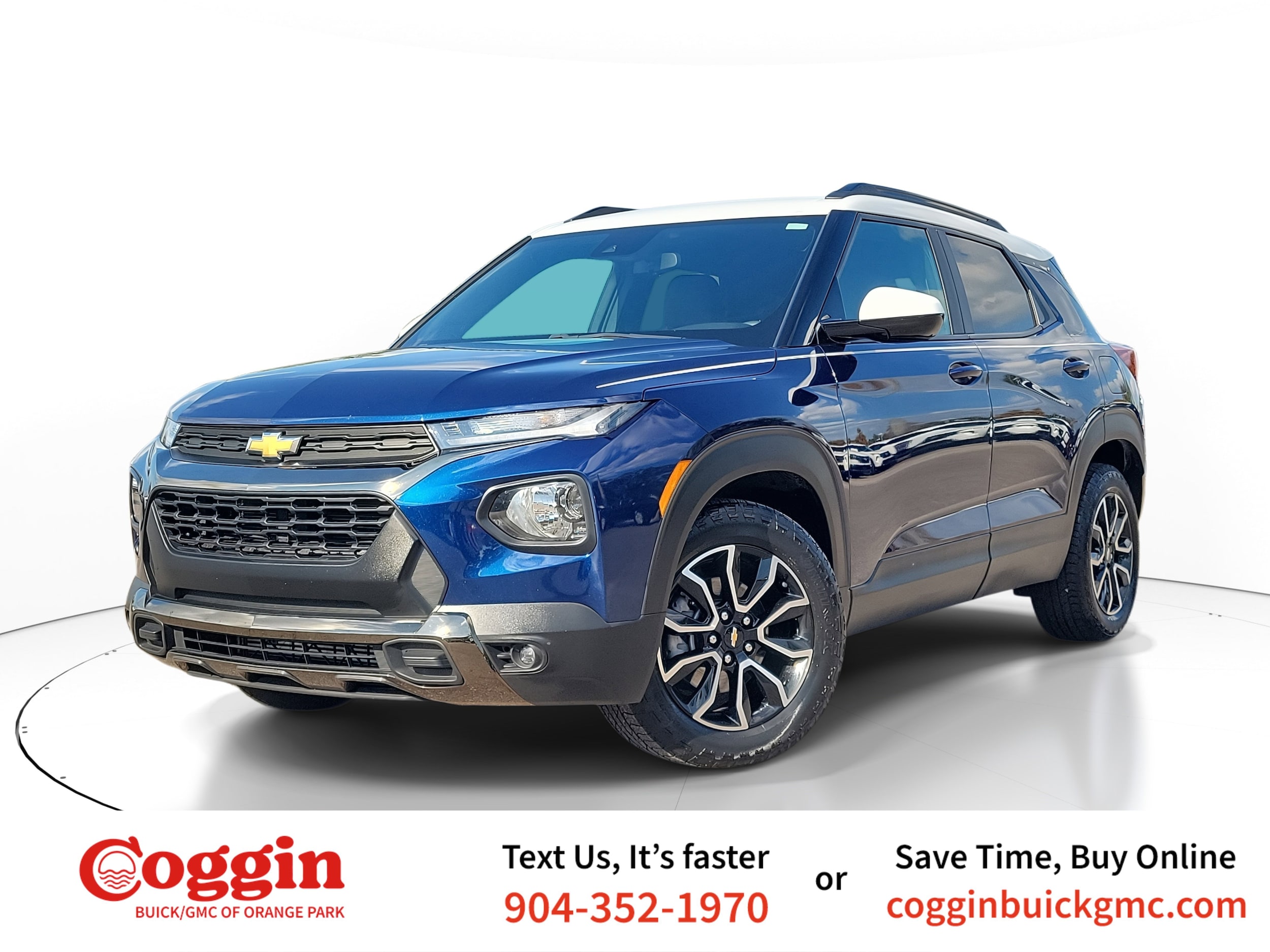 Stock #: CTH252309A, Exterior Color: Blue Glow Metallic, Interior Color: Jet Black with Arizona accents, Leatherette seat t, Mileage: 24,364 miles miles, Body Style: SUV, Transmission: Automatic, Location: Coggin Buick GMC of Orange Park, Comments: RECALL NOTICE: Some vehicles offered for sale may be subject to unrepaired manufacturer safety recalls. To determine the recall status of a vehicle, visit https://www.nhtsa.gov/recalls.Clean CARFAX.Blue Glow Metallic 2022 Chevrolet TrailBlazer ACTIVFWD CVT 1.3L Ecotec Turbo DOHC SIDI w/VVTRecent Arrival! Odometer is 33693 miles below market average! 29/33 City/Highway MPG7 Reasons to Buy Your Used Car from the Coggin Buick GMC. *We believe that you deserve to drive a car that you LOVE. * We have served over 200,000 customers just like you. * All our vehicles are thoroughly serviced and inspected before hitting our lot. * We use market-based pricing to provide you with a no-haggle buying experience. * For extra peace of mind, an extended service contract may be available. * First time buyer or challenged credit? We can help you find the car and financing you need TODAY. * Ask your sales person how you can earn extra CASH by referring your friends.Awards:* 2022 IIHS Top Safety Pick+