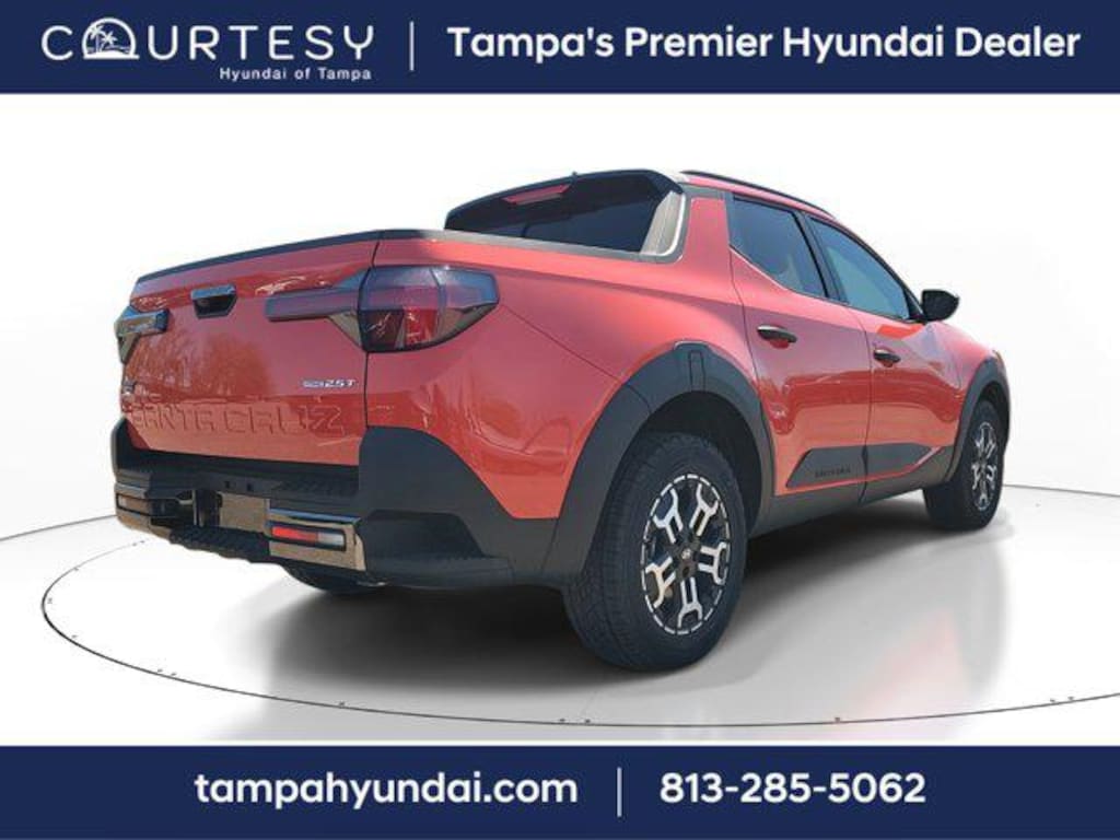 Canyon Red 2025 Hyundai Santa Cruz XRT 4D Crew Cab AWD 2.5L I4 Shiftronic Price includes: $1500 - Hyundai HMF Dealer Choice : $1500 discount and 5.99% APR for 24 months. $44.32 per $1000 financed. Available to well qualified buyers who finance through Hyundai Motor Finance. H704. Exp. 11/03/2025