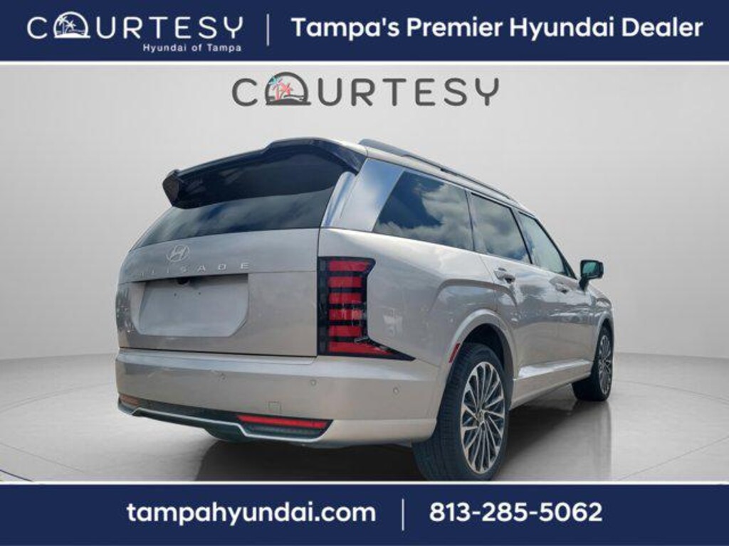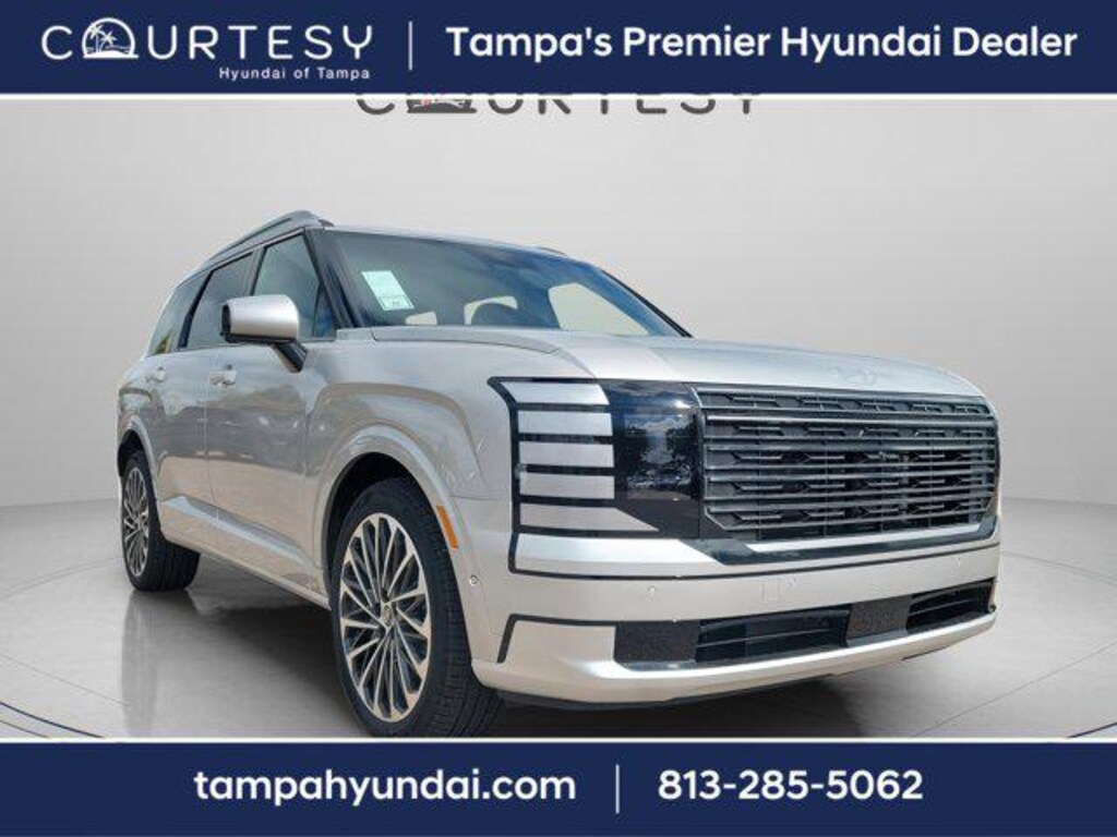 Typhoon Silver Metallic 2026 Hyundai Palisade Calligraphy 4D Sport Utility FWD V6 8-Speed Automatic Price includes: $2250 - Hyundai HMF Dealer Choice: $2250 discount and 5.49% APR for 24 months. $44.09 per $1000 financed. Available to well qualified buyers who finance through Hyundai Motor Finance. H704. Exp. 01/02/2026