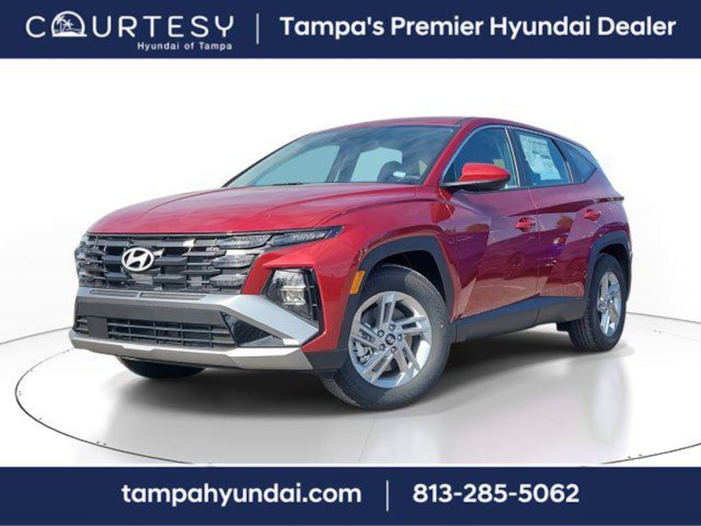 Ultimate Red 2026 Hyundai Tucson SE 4D Sport Utility FWD 2.5L I4 DGI DOHC 16V LEV3-SULEV30 187hp 8-Speed Automatic with SHIFTRONIC Price includes: $2750 - Hyundai HMF Dealer Choice : $2750 discount and 5.49% APR for 24 months. $44.09 per $1000 financed. Available to well qualified buyers who finance through Hyundai Motor Finance. H704. Exp. 12/01/2025