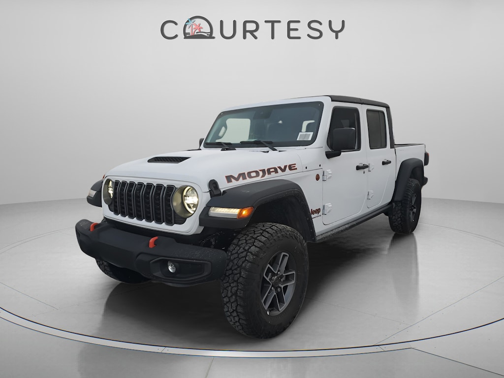 The Jeep Gladiator Mojave 4X4 is built to dominate the desert and beyond. With FOX performance shocks, rugged Dana axles, and desert-rated engineering, it blends uncompromising offroad capability with advanced technology and comfort. Finished in Bright White with a Black interior, the Mojave delivers bold Jeep toughness and premium features.