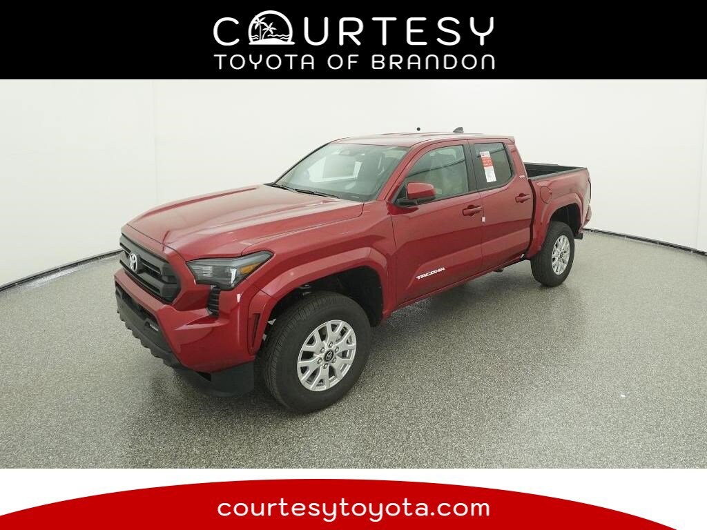 21/26 City/Highway MPG 2025 Toyota Tacoma SR5 Supersonic Red 4D Double Cab RWD 8-Speed Automatic 2.4L 4-Cylinder