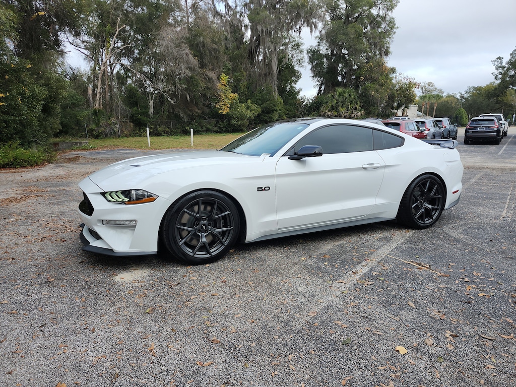 Check out all these options: Equipment Group 401A (Blind Spot Info System w/Cross-Traffic Alert, Leather Bucket Seats w/Color Accents, and Memory Driver Seat, Mirrors & Ambient Lighting), Ford Safe & Smart Package (Adaptive Cruise Control, Automatic High Beam, Lane-Keeping Alert, Pre-Collision Assist w/Pedestrian Detection, and Rain-Sensing Windshield Wipers), GT Performance Package (Engine Spun Aluminum Instrument Panel, Gauge Pack (Oil Pressure & Vacuum), HD Front Springs, Larger Brake Rotors, Larger Radiator, Unique Stability Control, and Wheels: 19 x 9 Fr & 19 x 9.5 Rr Ebony Black), 4-Wheel Disc Brakes, 9 Speakers, ABS brakes, Active Valve Performance Exhaust, Air Conditioning, Alloy wheels, AM/FM radio: SiriusXM, AM/FM Stereo, AppLink/Apple CarPlay and Android Auto, Auto-dimming Rear-View mirror, Automatic temperature control, Brake assist, Bumpers: body-color, Climate Controlled Heated/Cooled Front Seats, Compass, Delay-off headlights, Driver door bin, Driver vanity mirror, Dual front impact airbags, Dual front side impact airbags, Electronic Stability Control, Emergency communication system: 911 Assist, Exterior Parking Camera Rear, Four wheel independent suspension, Front anti-roll bar, Front Bucket Seats, Front Center Armrest, Front dual zone A/C, Front fog lights, Front reading lights, Fully automatic headlights, Garage door transmitter, HD Radio, Heated door mirrors, Heated front seats, Illuminated entry, Knee airbag, Leather Bucket Seats, Leather Shift Knob, Low tire pressure warning, Occupant sensing airbag, Outside temperature display, Overhead airbag, Overhead console, Panic alarm, Passenger door bin, Passenger vanity mirror, Power door mirrors, Power driver seat, Power passenger seat, Power steering, Power windows, Radio data system, Radio: B&O Sound System by Bang & Olufsen, Rear anti-roll bar, Rear window defroster, Remote keyless entry, Security system, SiriusXM Radio, Speed control, Speed-sensing steering, Speed-Sensitive Wipers, Split folding rear seat, Spoiler, Steering wheel mounted audio controls, SYNC 3 Communications & Entertainment System, Tachometer, Telescoping steering wheel, Tilt steering wheel, Traction control, Trip computer, Turn signal indicator mirrors, Variably intermittent wipers, Ventilated front seats, Voice-Activated Touch-Screen Navigation System, Voltmeter, Wheels: 18 x 8 Machined-Face Aluminum, and Wheels: 19 x 9 Fr/19 x 9.5 Rr Luster. Recent Arrival! 2019 Ford Mustang Oxford White 10-Speed Automatic 2D Coupe 5.0L V8 Ti-VCT RWDAwards: