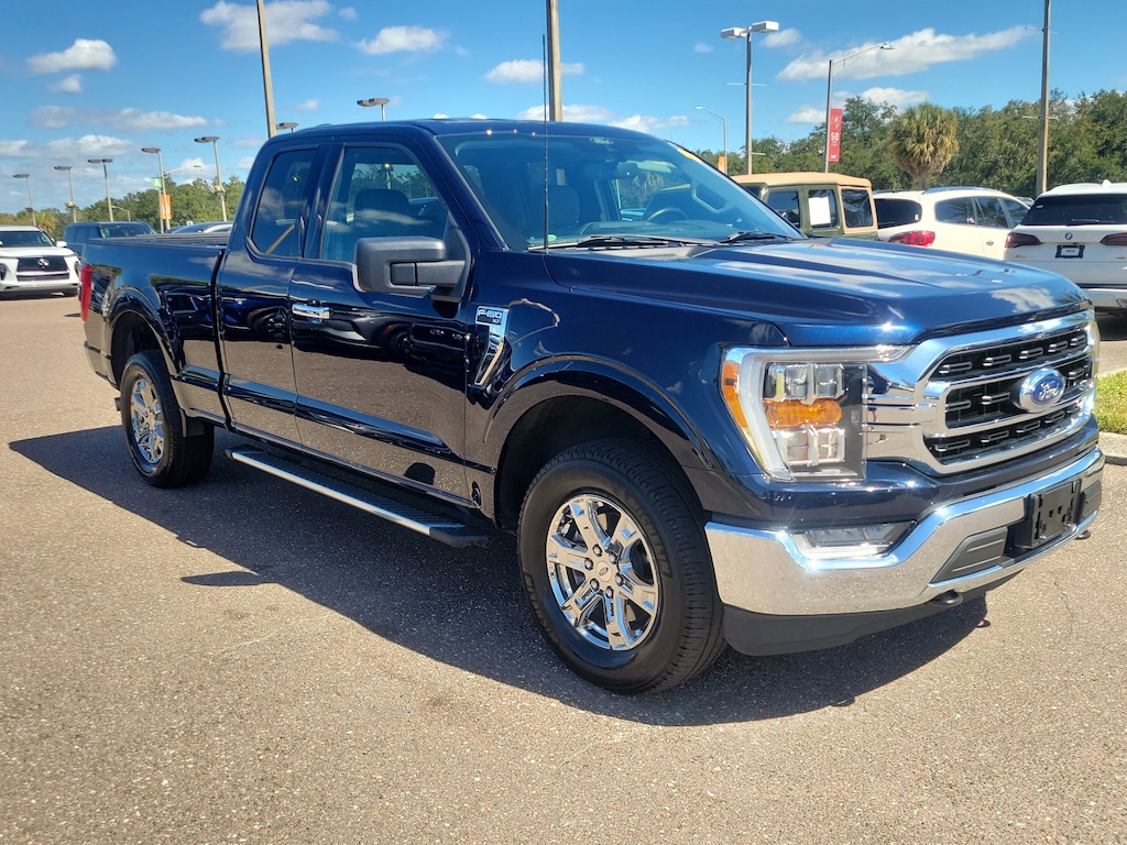 Clean CARFAX, REARVIEW CAMERA, BLUETOOTH®, HANDS-FREE, STEERING WHEEL CONTROLS, FOUR WHEEL DRIVE, ONBOARD 400W OUTLET CNCTD BLT-IN NAV AUTO START-STOP REMOVAL CLASS IV TRAILER HITCH MIRROR MAN FOLD W/POWER GLASS INTEGRATED TRAILER BRAKE CONT BED UTILITY PACKAGE BOXLINK .TAILGATE STEP .LED BOX LIGHTING CLOTH 40/CONSOLE/40, ELECTRONIC AUTO TEMP CONTROL SIRIUS XM W/ 360L SYNC 4 W/ENHANCED VOICE RECOG LED SIDE-MIRROR SPOTLIGHTS REMOTE START SYSTEM, BLIS W/CROSS-TRAFFIC ALERT DYNAMIC HITCH ASSIST ELECT 4X4 SHIFT-ON-FLY FORDPASS CONNECT 4G HOTSPOT TELEMATICS MODEM GAS-CHARGED SHOCKS LANE-KEEPING SYSTEM POST-COLLISION BRAKING PRE-COLLISION ASSIST W/AEB REVERSE BRAKE ASSIST REVERSE SENSING AND REAR VIEW CAMERA SELECTSHIFT, 4WD, 10-Way Power Driver & Passenger Seats, 2-Bar Style Grille w/Chrome 2 Minor Bars, 8 Productivity Screen in Instrument Cluster, Auto-Dimming Rear-View Mirror, Bed Utility Package, BoxLink, Bright Polished Step Bars, Chrome Door & Tailgate Handles w/Body-Color Bezel, Chrome Single-Tip Exhaust, Class IV Trailer Hitch Receiver, Dual Zone Electronic Automatic Temperature Control, Equipment Group 302A High, GVWR: 6,500 lbs Payload Package, Heated Front Seats, Intelligent Access w/Push Button Start, Leather-Wrapped Steering Wheel, LED Box Lighting, LED Reflector Headlamps, LED Sideview Mirror Spotlights, Navigation System, Onboard 400W Outlet, Power Glass Heated Sideview Mirrors, Radio: AM/FM SiriusXM w/360L, Rear Under-Seat Storage, Remote Start System w/Remote Tailgate Release, SecuriCode Drivers Side Keyless-Entry Keypad, SYNC 4 w/Enhanced Voice Recognition, Tailgate Step w/Tailgate Work Surface, Wheels: 18 Chrome-Like PVD, XLT Chrome Appearance Package, Zone Lighting. Priced below KBB Fair Purchase Price!Antimatter Blue Metallic 2022 Ford F-150 Super Cab XLT 4WD 10-Speed Automatic 2.7L V6 EcoBoost