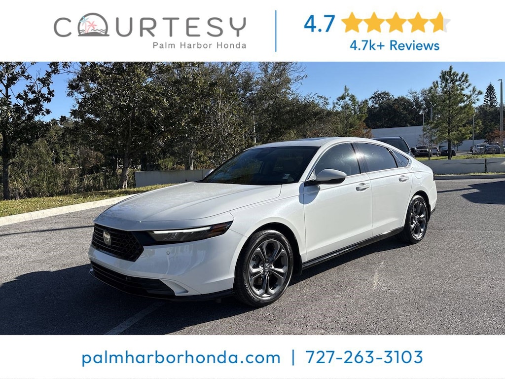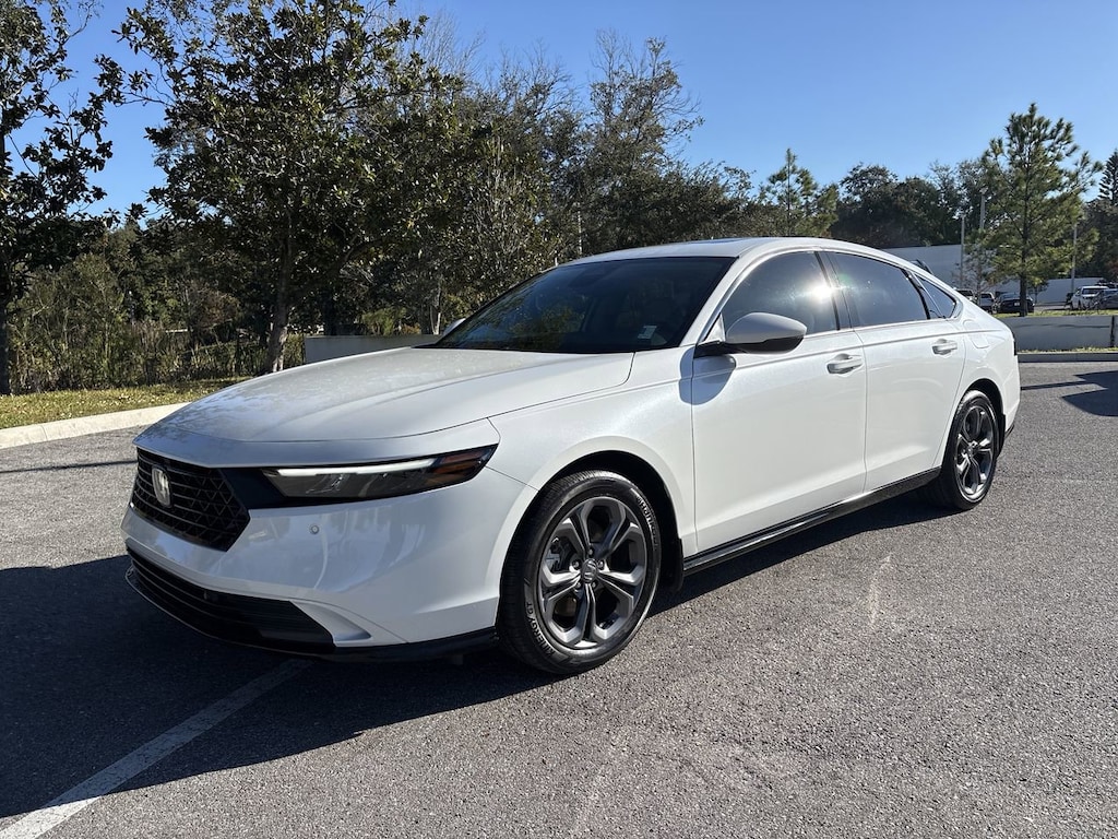 Platinum White Pearl 2025 Honda Accord Hybrid EX-L 4D Sedan True Certified FWD eCVT 2.0L I4 DOHC 16V