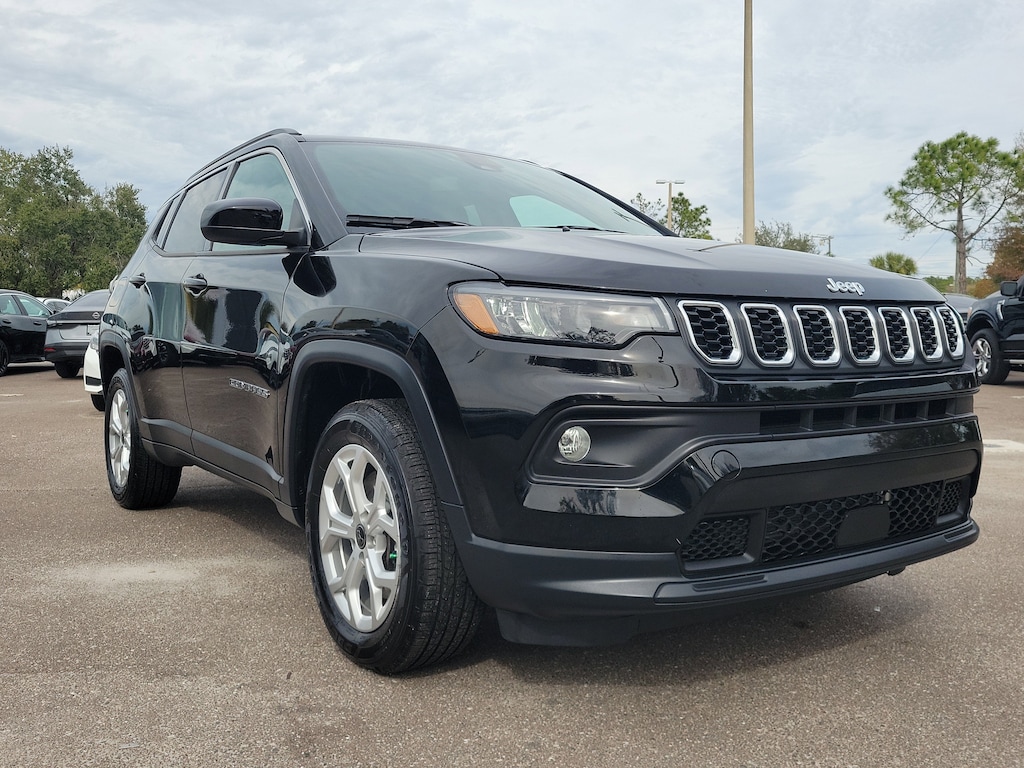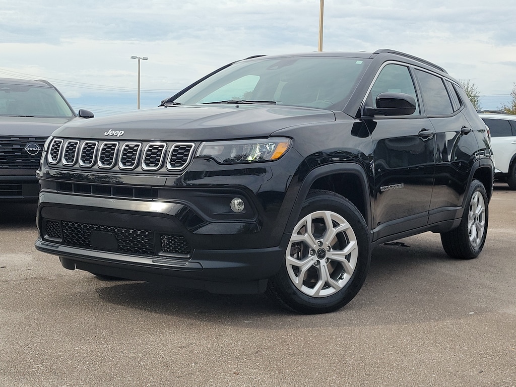 24/32 City/Highway MPG *LOW MILES / ONLY 12K MILES*, *FOUR WHEEL DRIVE / 4WD*, *CARFAX ONE OWNER*, *APPLE CAR PLAY / ANDROID AUTO*, *SIRIUSXM*, *BLUETOOTH*, *17 ALLOY WHEELS*, *HEATED SEATS*, *REARVIEW BACKUP CAMERA*, *BLIND SPOT WARNING*, *FORWARD COLLISION WARNING*, *REMOTE KEYLESS ENTRY*, *PUSH BUTTON START*, 4WD, 3.73 Final Drive Ratio, 4-Wheel Disc Brakes, 6 Speakers, ABS brakes, Air Conditioning, Alloy wheels, AM/FM radio: SiriusXM, Apple CarPlay/Android Auto, Auto High-beam Headlights, Brake assist, Bumpers: body-color, Compass, Delay-off headlights, Driver door bin, Driver vanity mirror, Dual front impact airbags, Dual front side impact airbags, Electronic Stability Control, Emergency communication system: Jeep Connect, Four wheel independent suspension, Front anti-roll bar, Front Bucket Seats, Front Center Armrest w/Storage, Front fog lights, Front reading lights, Fully automatic headlights, Heated door mirrors, Heated front seats, Heated steering wheel, Illuminated entry, Knee airbag, Leather Shift Knob, Leather steering wheel, Low tire pressure warning, Occupant sensing airbag, Outside temperature display, Overhead airbag, Overhead console, Panic alarm, ParkView Rear Back-Up Camera, Passenger door bin, Passenger vanity mirror, Power door mirrors, Power steering, Power windows, Premium audio system: UConnect 5, Premium Cloth/Vinyl Bucket Seats, Quick Order Package 29J, Radio: Uconnect 5 w/8.4 Display, Rear anti-roll bar, Rear seat center armrest, Rear window defroster, Rear window wiper, Remote keyless entry, Security system, Speed control, Split folding rear seat, Spoiler, Steering wheel mounted audio controls, Tachometer, Telescoping steering wheel, Tilt steering wheel, Traction control, Trip computer, Variably intermittent wipers, Wheels: 17 x 7 Aluminum (DISC). Recent Arrival! Clean CARFAX.Diamond Black Crystal Pearlcoat 2025 Jeep Compass Latitude 4WD 8-Speed Automatic 2.0L I4 DOHC