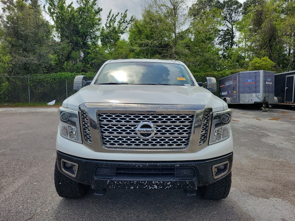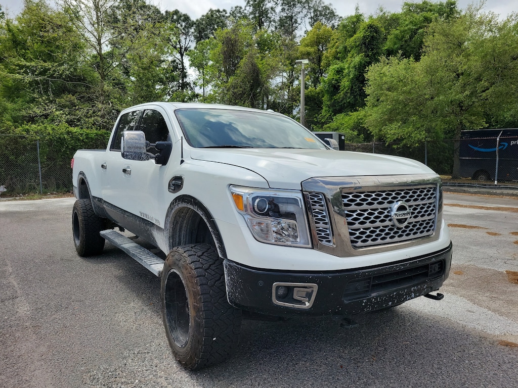 Recent Arrival! 2019 Nissan Titan XD Platinum Reserve2019 Nissan Titan XD Platinum Reserve Diesel a heavy-duty pickup that combines turbo diesel power, premium luxury, and serious work capability, perfect for drivers across Jacksonville, St. Augustine, Orange Park, Fleming Island, and beyond. Powered by a 5.0L Cummins turbo diesel V8 engine paired with a 6-speed automatic transmission, this Titan XD delivers impressive torque, strong towing capability, and dependable performance for both demanding jobs and long-distance hauling. Finished in Pearl White with a Black interior, this Platinum Reserve stands out with bold styling, dark chrome accents, 20-inch dark chrome wheels, LED fog lights, and running boards that enhance both appearance and functionality. Inside, the cabin offers a luxury experience with premium leather-appointed heated and ventilated captains chairs, a refined interior design, and spacious seating for added comfort on every drive. Technology is a highlight with a Nissan navigation system, NissanConnect services, SiriusXM capability, Bluetooth connectivity, and a premium Fender audio system with 12 speakers for an immersive sound experience. Equipped with the Platinum Utility Package and Utility Bed Package, this truck includes a TITAN Box storage system, electronic locking tailgate, rear utility bed step, gooseneck hitch with anchor kit, and rear under-seat storage, making it ready for both work and recreation. Rear seat entertainment adds additional comfort for passengers, making long trips more enjoyable for everyone onboard. Built for capability, this Titan XD features a heavy-duty frame, high GVWR, trailer-ready setup, and advanced braking systems to handle tough workloads with confidence. Safety features include advanced airbag systems, traction control, stability control, and a rearview camera to provide added confidence behind the wheel. With its combination of diesel power, premium features, and work-ready capability, this 2019 Nissan Titan XD Platinum Reserve is a standout choice in the heavy-duty truck segment. If you're searching for a diesel truck in Jacksonville or surrounding areas that delivers strength, luxury, and versatility, this Titan XD is ready to get the job done. What sets us apart is our guest-centric approach and complete transparency in everything we do. Your experience always comes first, and were here to make your buying process simple, straightforward, and enjoyable..