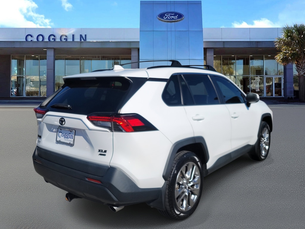 Recent Arrival! Certified. 2019 Toyota RAV4 XLE Premium2019 Toyota RAV4 XLE Premium AWD Super White, Weather & Tech Packages, JBL Audio Adventure-ready and city-smart, this Super White RAV4 XLE Premium delivers all-weather confidence and upscale comfort. With its efficient 2.5L engine, intelligent AWD system, and premium interior appointments, its built for life in motionwhether youre commuting through Jacksonville traffic or heading to the coast for the weekend. XLE Premium AWD with 2.5L DOHC 4-Cylinder, 203 hp / 184 lb-ft torque Direct Shift 8-speed automatic transmission with Eco, Sport, and Normal modes All-Wheel Drive with Multi-Terrain Select for snow, mud, and sand conditions Weather Package: Heated front seats, heated leather-trimmed steering wheel, 8-way power driver seat with memory, rain-sensing wipers, and windshield de-icer Technology Package: Intelligent Clearance Sonar with Rear Cross-Traffic Braking, Digital Rearview Mirror with HomeLink, Qi wireless charging Entune 3.0 Audio Plus with JBL & Clari-Fi 11-speaker system including subwoofer and amplifier, 8 touchscreen with integrated backup camera, Apple CarPlay, SiriusXM, Scout GPS Link, Wi-Fi Connect, and Safety Connect SofTex-trimmed interior with power driver seat, dual-zone climate control, Smart Key with push-button start 19 Super Chrome alloy wheels, LED headlights and fog lamps, power moonroof, power liftgate, and blackout emblem overlays Blind Spot Monitor with Rear Cross-Traffic Alert, Toyota Safety Sense 2.0 suite (Pre-Collision System, Full-Speed Dynamic Radar Cruise, Lane Tracing, Road Sign Assist) 50-State Emissions compliant; EPA-rated 28 MPG combined Why buy from Coggin Ford Jacksonville: Experience a guest-first approach with transparent pricing, fast trade appraisals, and thoroughly inspected vehicles. Every pre-owned vehicle we offer is backed by our commitment to quality and long-term service you can trust. 2019 Toyota RAV4 XLE Premium AWD for sale in Jacksonville FL; used Toyota RAV4 with heated seats and JBL audio; RAV4 XLE Premium with Weather Package; used AWD RAV4 near me; RAV4 with moonroof and leather Jacksonville; Toyota SUV for sale Northeast Florida; pre-owned RAV4 AWD with tech package Proudly serving Jacksonville, Saint Augustine, Northeast Florida, Daytona, Tampa, Southern Georgia, Kingsland, and Starke., AWD, Black Artificial Leather, 3 Spoke Leather Heated Steering Wheel, Cold Weather Package, Driver Seat w/2-Position Memory Function, Front Door Smart Key System w/Push Button Start, Front Seat Heating, Power Liftgate, Power moonroof, Rain Sensing Front Wipers, Wiper/Windshield Deicer, XLE Premium Package.